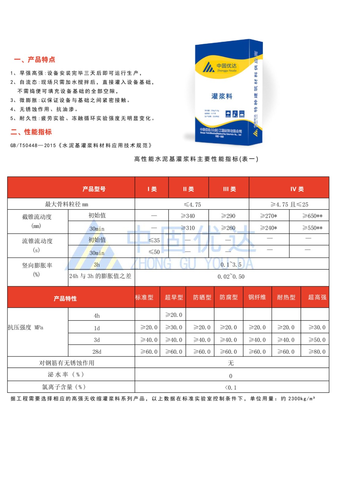 早強、高強、抗離析、綠色環(huán)保、微膨脹性、自流性好、粘結(jié)度高、耐久性強、抗開裂等